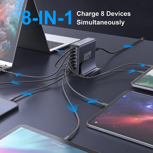 250W GaN USB C Charger Station 8-Ports Fast Charger Type C PD3.1 PD3.0 PPS Quick Charger For Macbook Pro iPad iPhone 16 Samsung