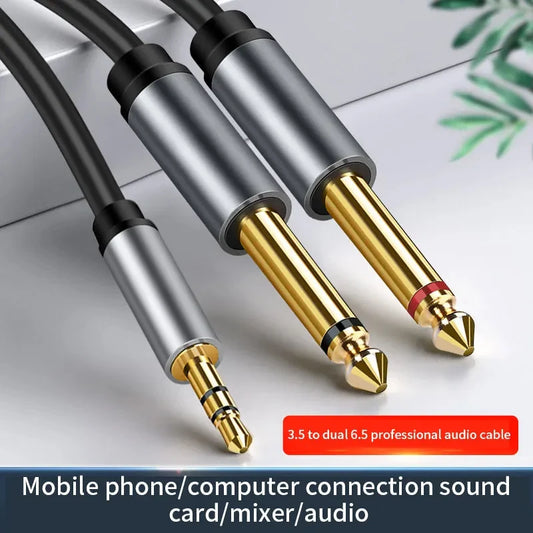 3.5mm to Double 6.5mm TRS Cable AUX Adapter Audio Cable 6.5 Jack to Stereo 3.5 Jack for Mixer Amplifier Speaker 6.35mm Adapter