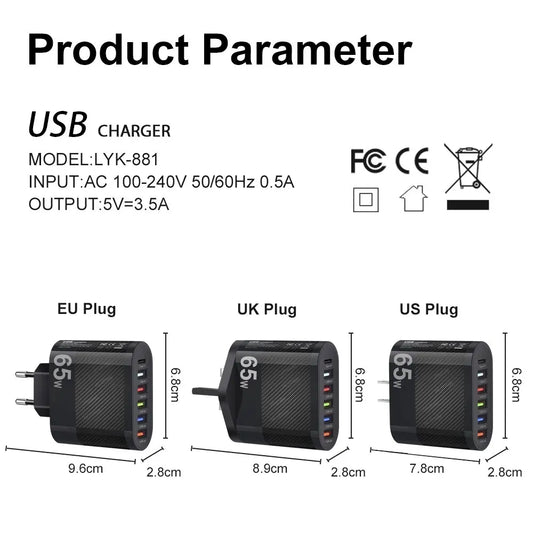 3.1A 5Ports USB Charger PD Charging Adapter For Xiaomi iPhone 13 Samsung Mobile Phone Plug Charging QC 3.0 Wall Charger