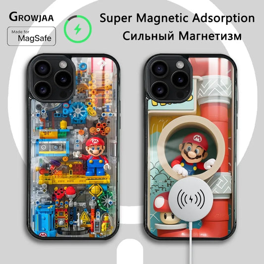 Super M-MarioS Bros Game Phone Case For iPhone 16 15 14 13 12 11 Pro Max Plus Mini Magsafe Mirror Wireless Magnetic Cover