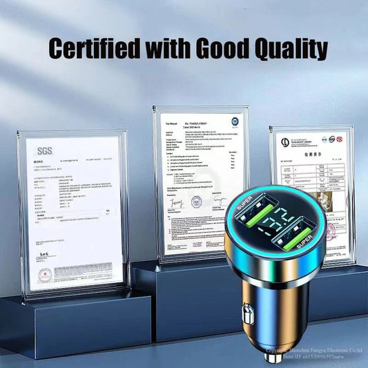 UYUXIO Dual USB Port Car Phone Charger Super Fast Charging Adapter with Voltage Display for iPhone Samsung Oppo Vivo Huawei