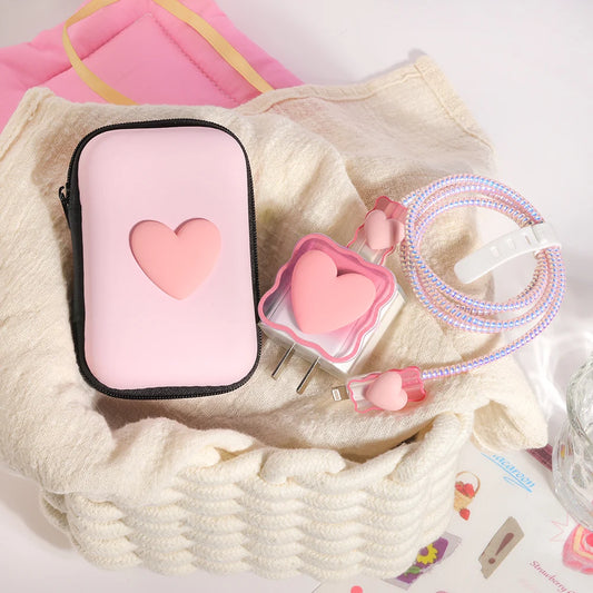 6PCS 3D Love Heart Silicone Charger Cable Protector Case Storage Bag For iPhone 20W 18W Charging Head Protective Cover Organizer