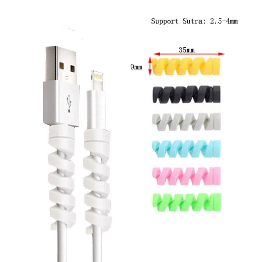10pcs Cable Protector Silicone Charge Cable Spiral Winder Wire End Cord Savers Cover For Phone USB Charger Cable Accessories