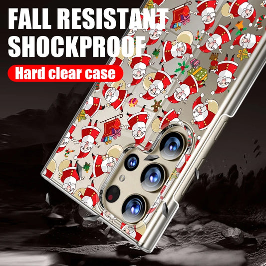 Cartoon New Year Christmas Santa Clear Phone Case for Samsung Galaxy S25 Ultra S24 FE S23 S22 S21 S20 Plus Wallet Card Bag Cover