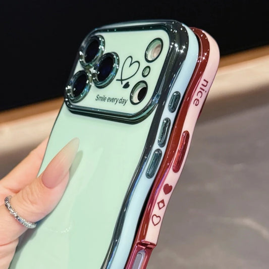 Luxury Plating Love Heart Wavy Border Phone Case For iPhone 17 16 15 14 13 12 11 Pro Max Plus 16E Air Shockproof Bumper Cover