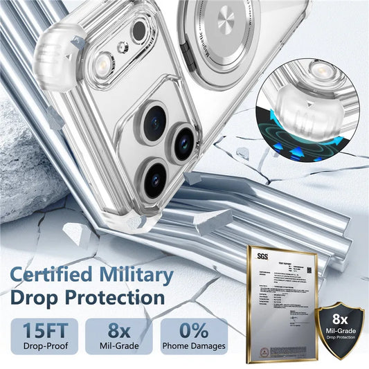 Luxury Magnetic Wireless Charge For Magsafe Case for iphone 17 Pro Max iphone17 Air 5G Transparent Shockproof Ring Holder Cover