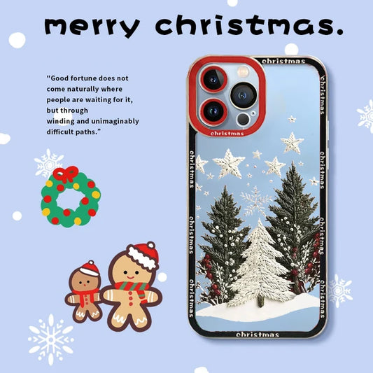 3D Santa Claus Christmas Tree Gloves Case For iPhone 16 13 12 15 14 Pro Max 13 12 Mini 14 16 15 Pro 16E SE4 Snowflake Elk Cover