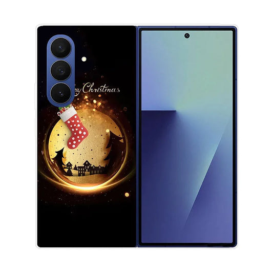 Christmas Painted Phone Case For Samsung Galaxy Z Fold 7 6 5 4 3 2 Fold7 Fold6 Fold5 Fold4 Transparent Hard PC Protect Cover