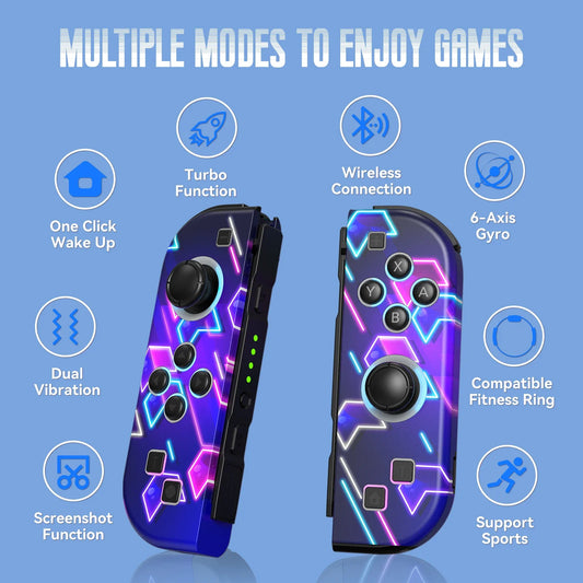Gamepad For Nintendo Switch/OLED/Lite - RGB LED (L/R) Joypad , Turbo Dual Vibration Wireless Controller For NS Joycon
