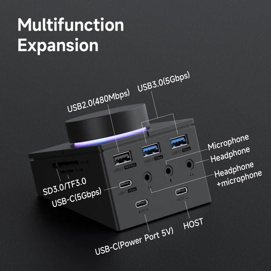 Hagibis Knob USB C Hub With Shortcut Buttons Type-C Docking Station Volume Adjustment Desktop Controller 2.5G RJ45 for Macbook
