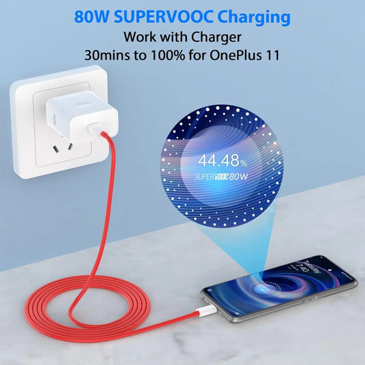 For OnePlus 80W SuperVOOC EU Fast Wall Charger for OnePlus 10 11 12 Nord CE 2 3 Lite OPPO realme 10 GT NEO 2 3 Type C USB Cable
