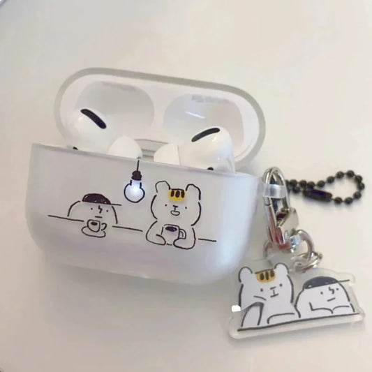 Funny Cat Airpod Case with Keychian Headset Protective Case for AirPods 1 2 3 Pro Case Kawaii Korea Air Pod 4Case Airpods Case