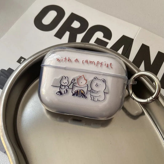 Rabbit Bear Bonfire Cute Cartoon Light Airpod Case for AirPods 4 3 Pro 2 Airpods Pro Case Silicone TPU Cover With Keychain