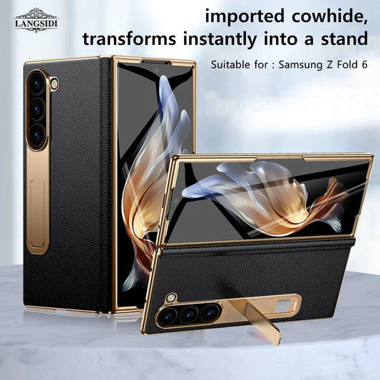 LANGSIDI Brand Luxury Genuine Leather Shockproof Case for Samsung Galaxy Z Fold 3 4 5 6 Magnetic Hinge Protective Stand Cover