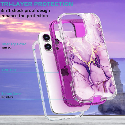 Fit iPhone 16 Pro 6.3" Phone Case, Marble Pattern Slim Shockproof Full Body Protective Rugged Cover For iPhone 16 Pro MAX 6.9