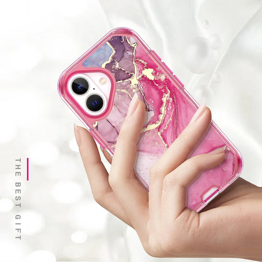 Fit iPhone 16 6.1" Phone Case, Marble Pattern Slim Shockproof Full Body Protective Rugged Cover For iPhone 16 Plus 6.7