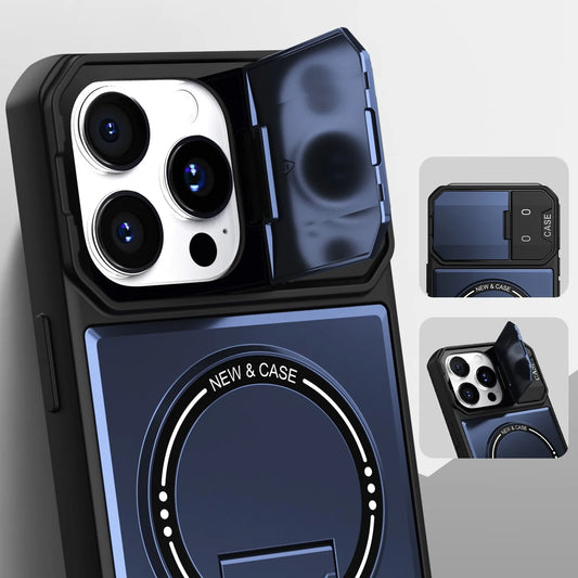 Military Armor Flip Camera Protect Phone Case For iPhone 17 12 13 16 Pro Max 14 15 Plus 16E 17 Air For Magnetic Fold Stand Cover