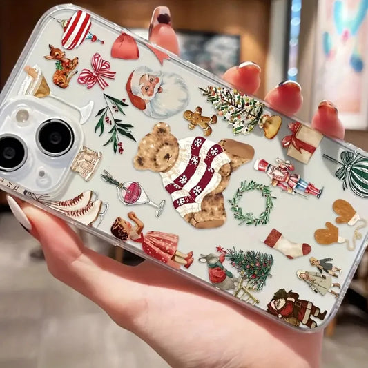 Winter Christmas Graphic Print Clear Case For iPhone 16 15 14 13 12 11 Pro Max 16E XS XR SE2 7 8 Plus SE2 SE3 Shockproof Cover