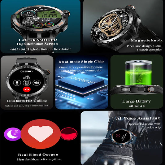 2026 New Outdoor Sports Smart Watch 1.43-inch AMOLED Bluetooth Call Heart Rate Monitoring AI Voice GPS Trajectory Smartwatches