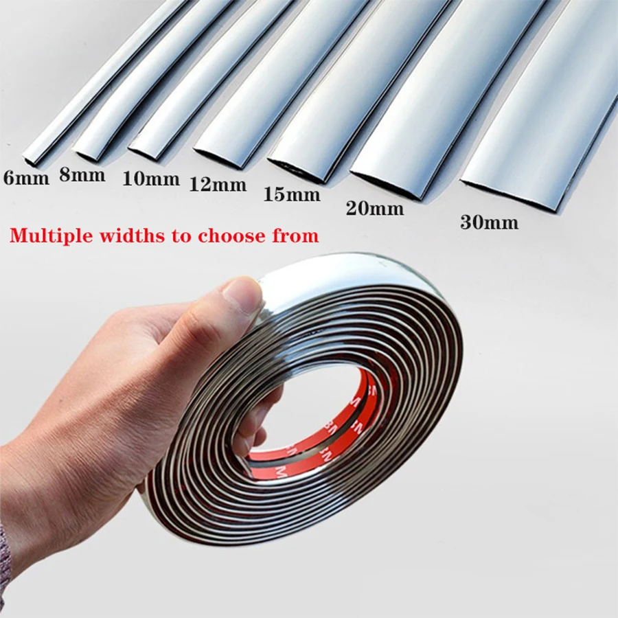 6/8/10/15/20/30MM Universal Silver Self Adhesive Side Door Chrome Strip Moulding Decoration Bumper Protector Tape Car Sticker