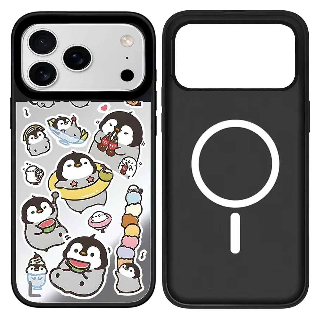 Cartoon Penguin Mirror Surface Cover for iPhone 12 13 14 15 16 17 Pro Max 17 Air Case - Protective Magnetic Case