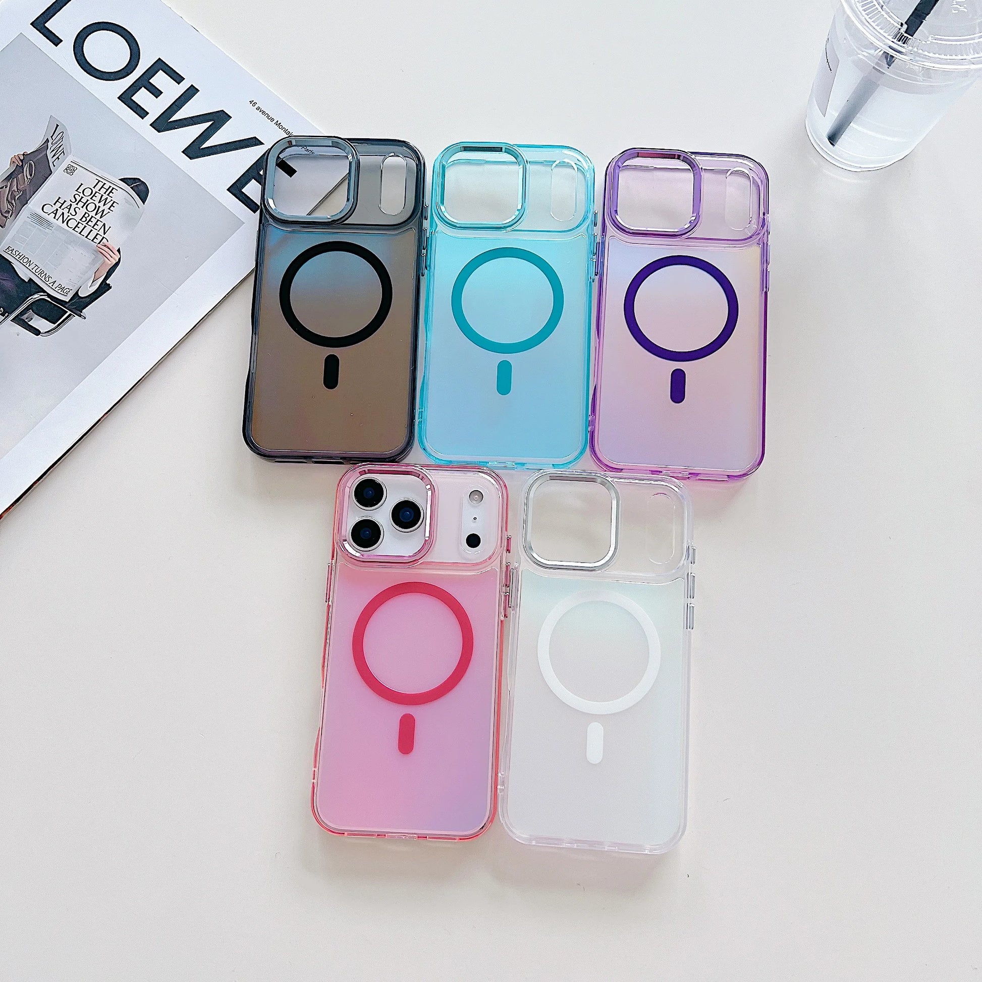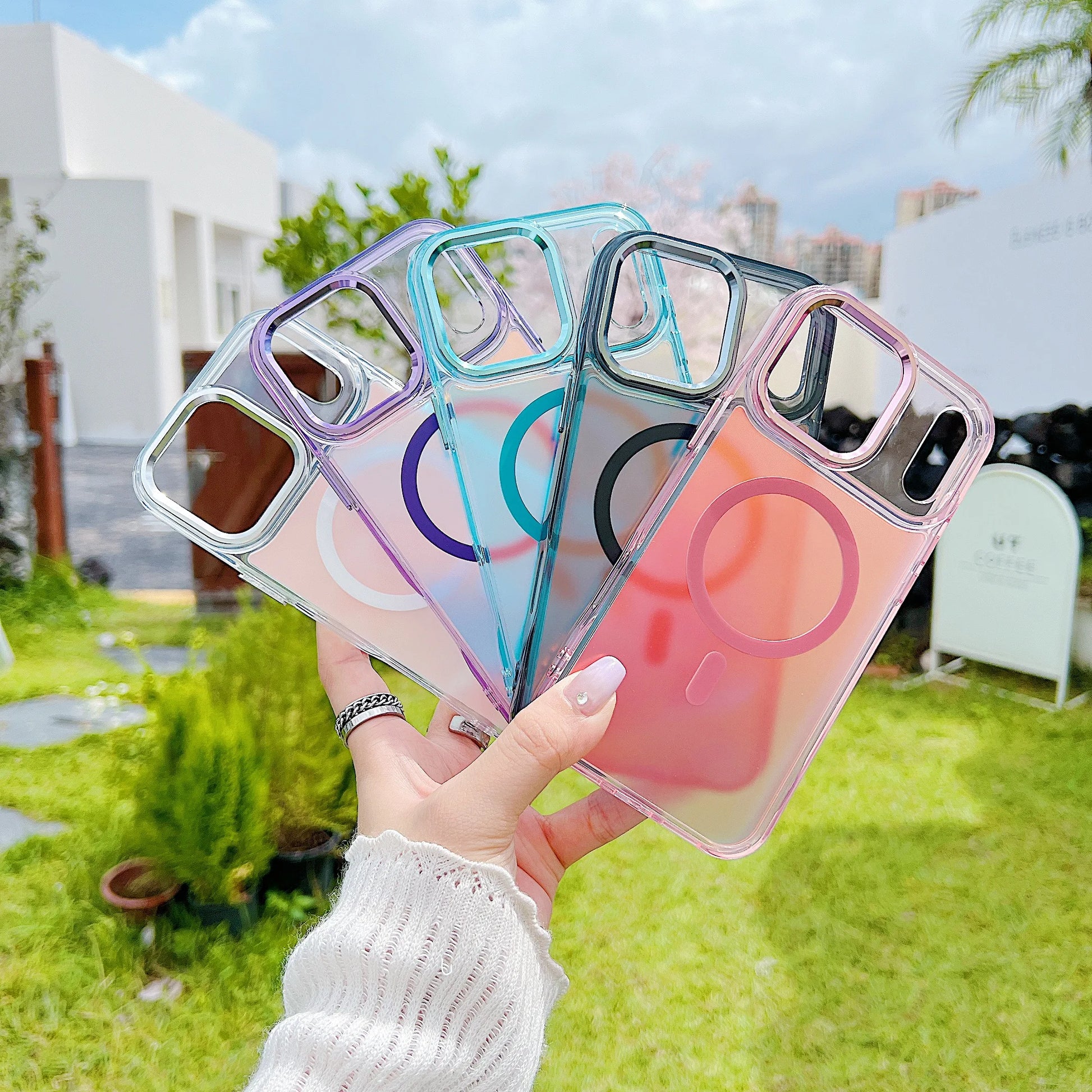Fashion Laser Gradient Translucent Shockproof Magnetic Case for IPhone 17 Air 16 15 14 Plus 13 12 17 Pro Max 16e Magsafe Cover