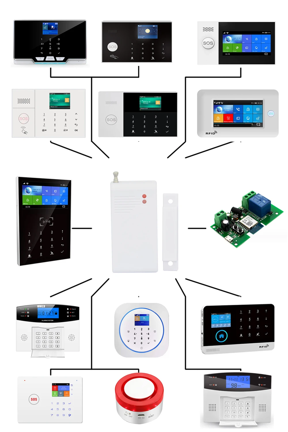 Noted , This wireless door sensor can't be work without alarm host , our this door sensor can work with this alarm system (433mhz ) as follow