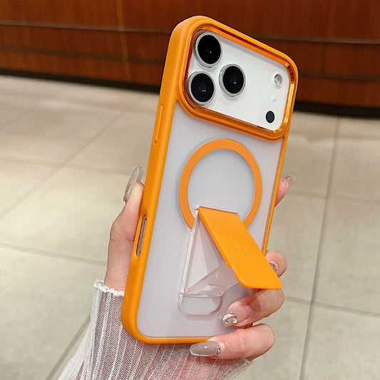New For Magsafe Magnetic Wireless Charging Fold Holder Ring Translucent Matte Phone Case For iPhone 17 Pro Max Bumper Back Cover