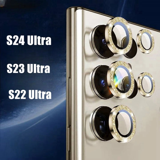 Glitter Camera Glass for Samsung Galaxy S24 Ultra , S23 Ultra , S22 Ultra , S24 Protective Lens Ring Screen Protector
