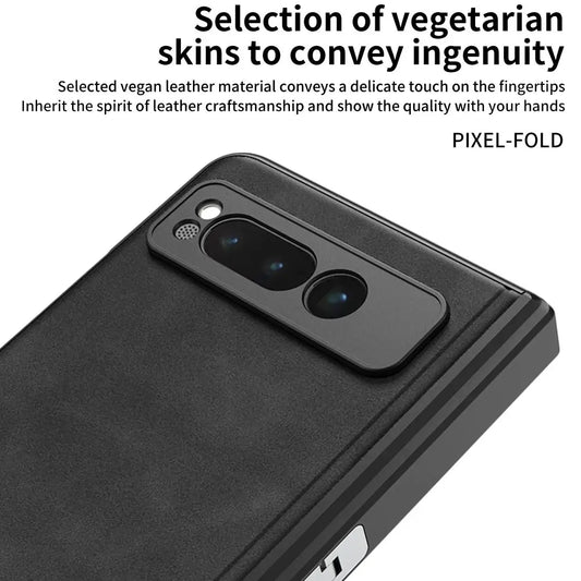 Frosted Plain Leather Case for Google Pixel Fold Magnetic Folding Hinge All-inclusive Protection Cover with Tempered Glass