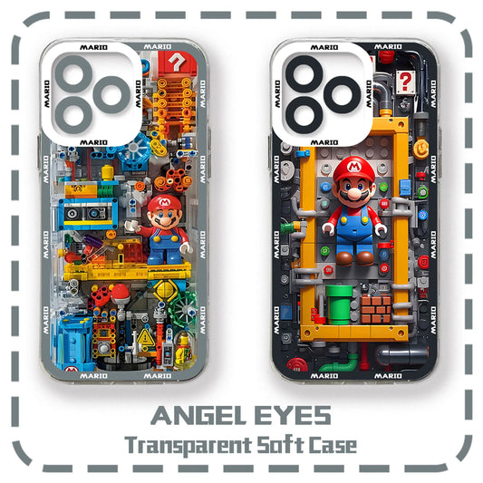 • Fashion building blocks M-Marios Phone Case For iPhone 16 15 14 13 12 11 Mini Pro Max X XR XSMax 7 8 Plus SE20 Transparent Cover - covers4phones