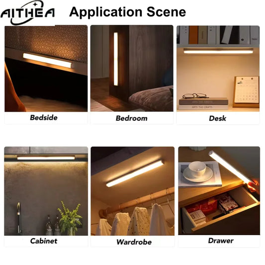 Motion Sensor LED Under Cabinet Lamp Dimmable Rechargeable Night Light Stairs Closet Room Aisle Tube Bar Detector Bulb