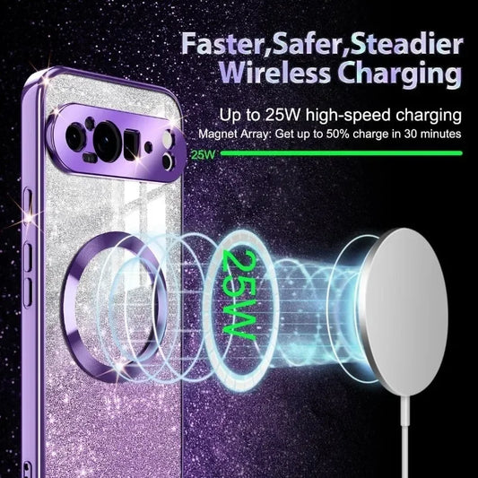 Luxury Electroplate Gradient Glitter Soft Phone Case for Google Pixel 9 Pro XL 8 8A Magnetic Charge Shockproof Protection Cover