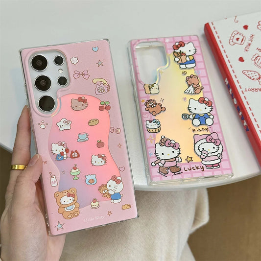 Laser Glitter Hello Kitty Phone Case For Samsung S25 S24 Ultra S23 FE S22 Plus A55 A54 A53 A52 A34 A25 A24 A15 A05 A05S 5G Cover