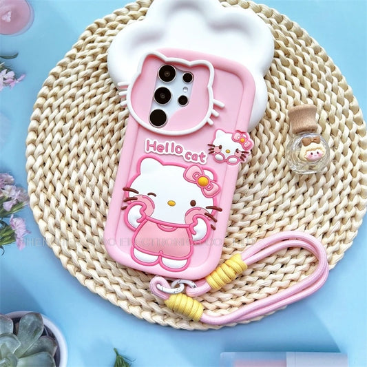 Cute 3D Cartoon Hello Kitty Silicone Phone Case For Samsung Galaxy S25 Ultra S24 Ultra S23 S21 Ultra FE Soft Cover