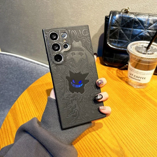 Premium Leather Japan Anime Pocket Monsters Gengar Laser Case For Samsung Galaxy S25 Edge S24 S23 Ultra Puls Back Protect Cover