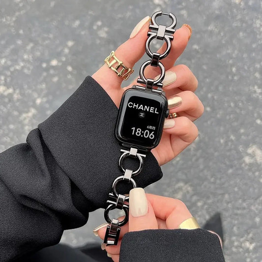 Metal Chain Strap for Apple Watch Series 9 8 7 6 SE 5 3 45/44/42/41mm Fashion Round Loop Bracelet IWatch Ultra 2 49mm 40mm 38mm