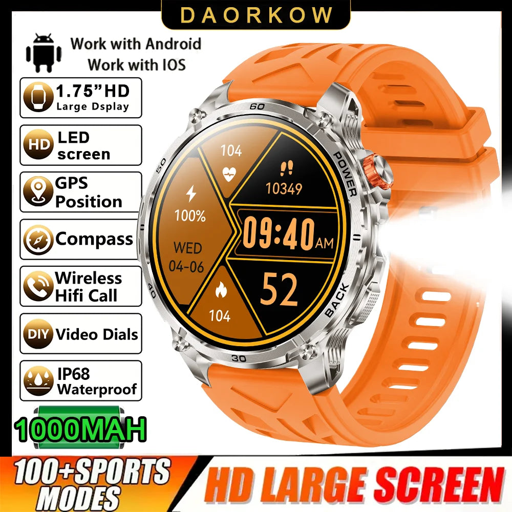 2026 New GPS Outdoor Sports Smartwatch Men AMOLED Screen NFC Flashlight Heart rate Waterproof Bluetooth Call 1000mAh Smartwatch