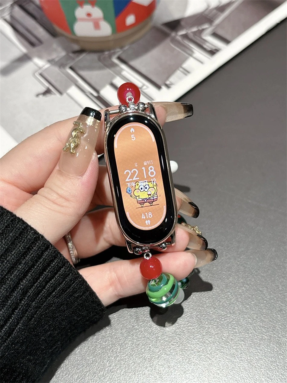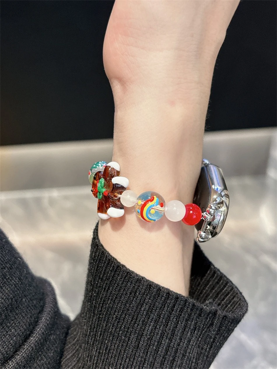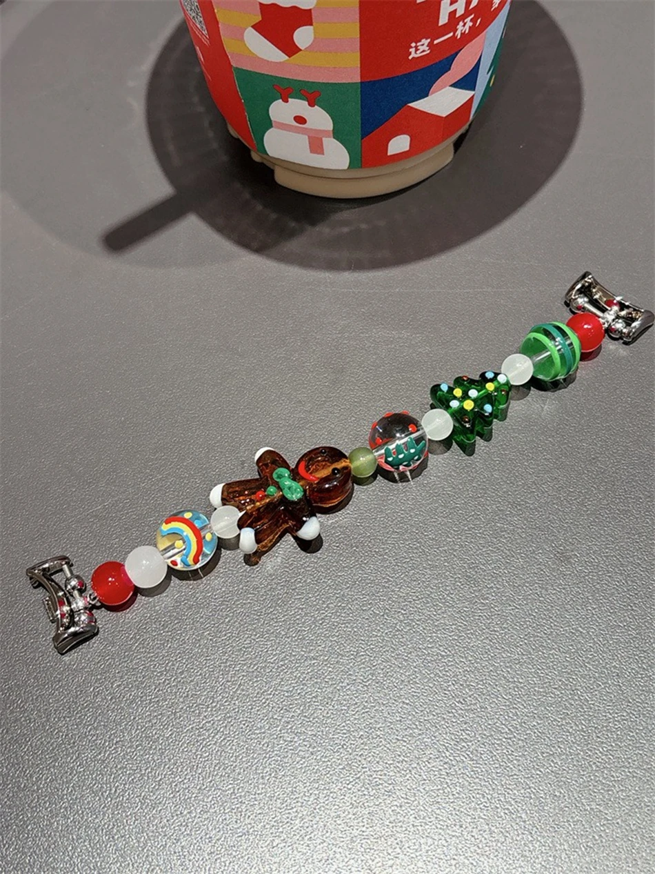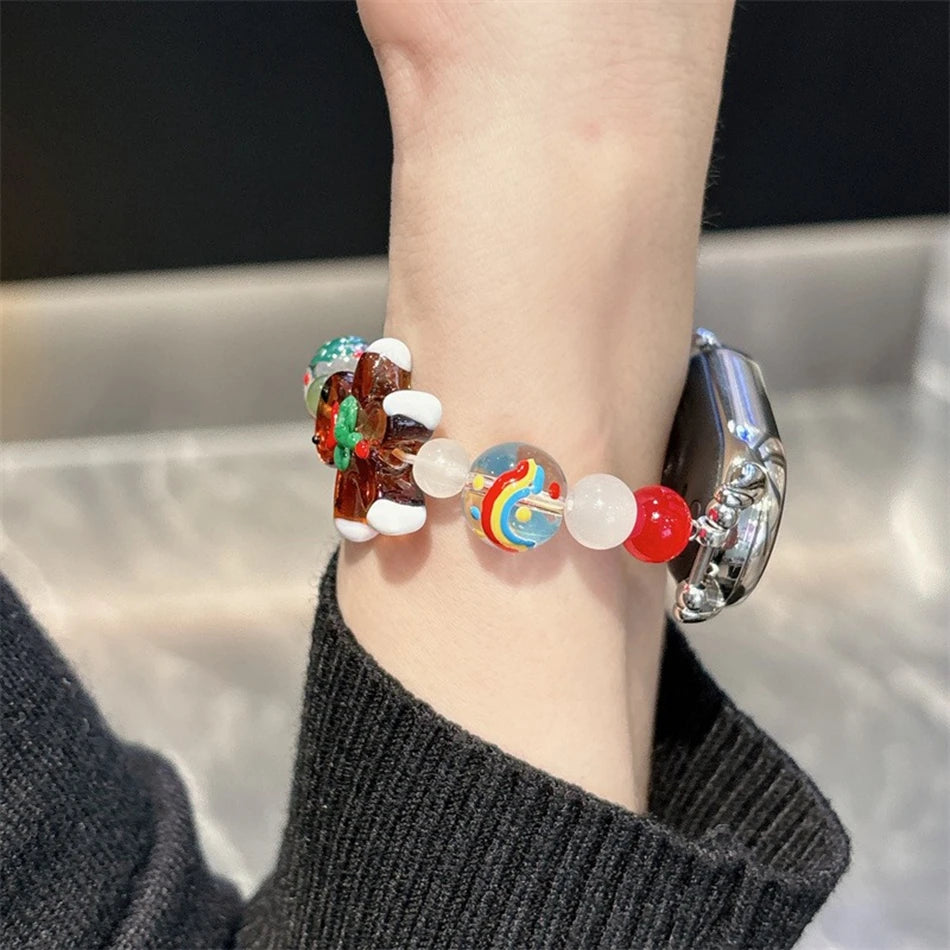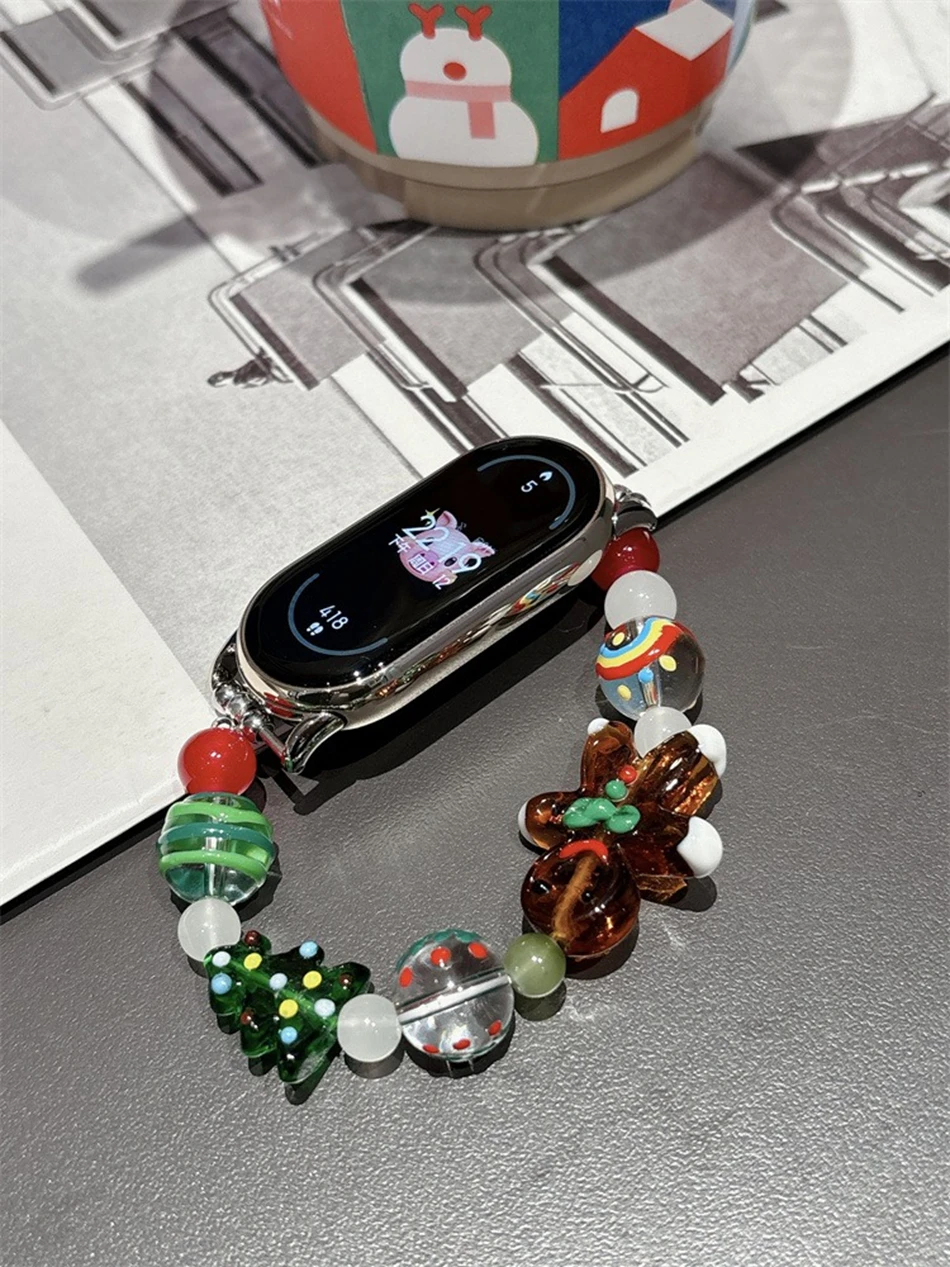 Christmas Strap For Xiaomi Mi Band 10 9 8 Pro Miband 9Pro 8 Pro Gingerbread Resin Beaded Elastic Bracelet Wristband Watch Band