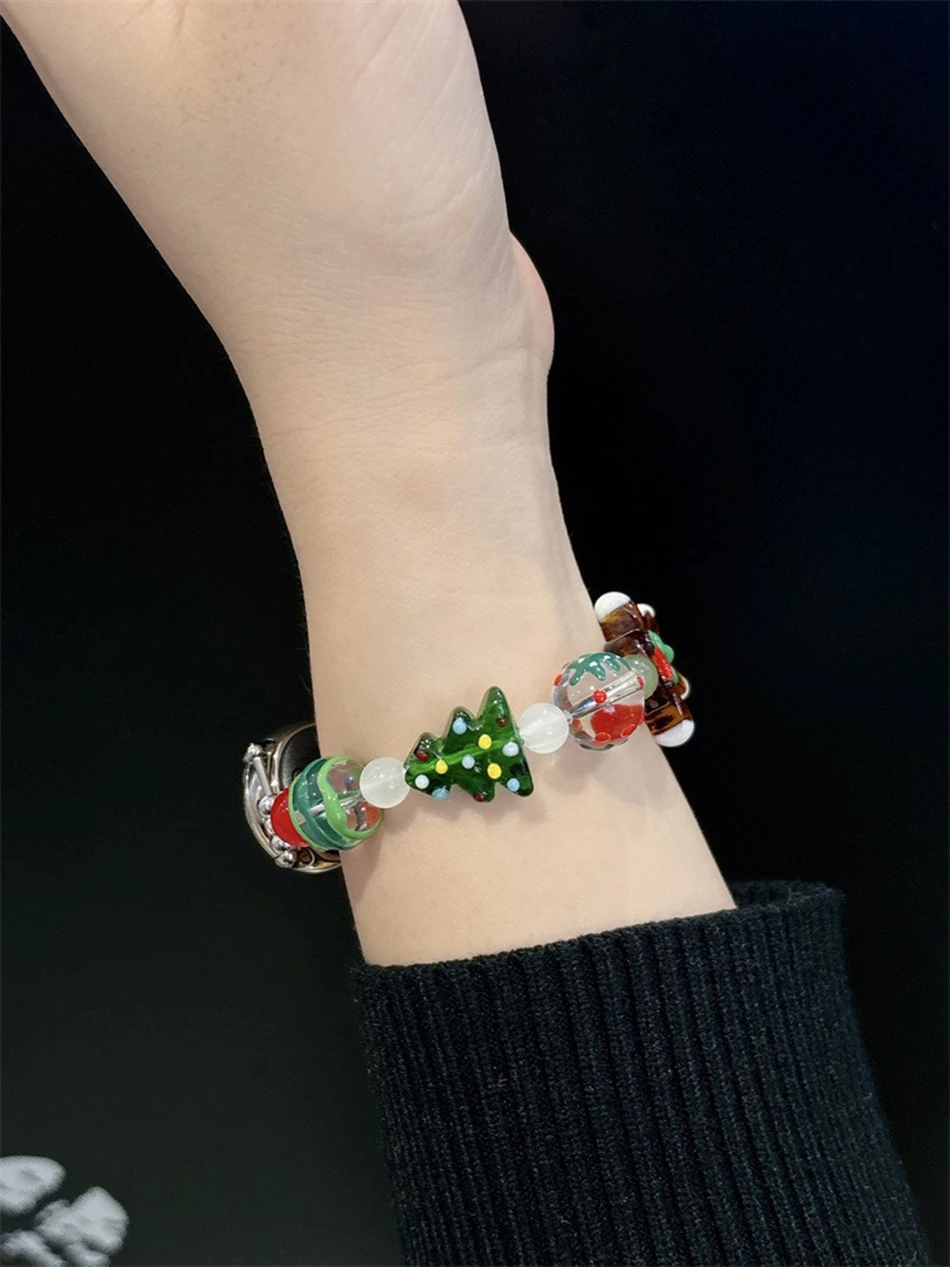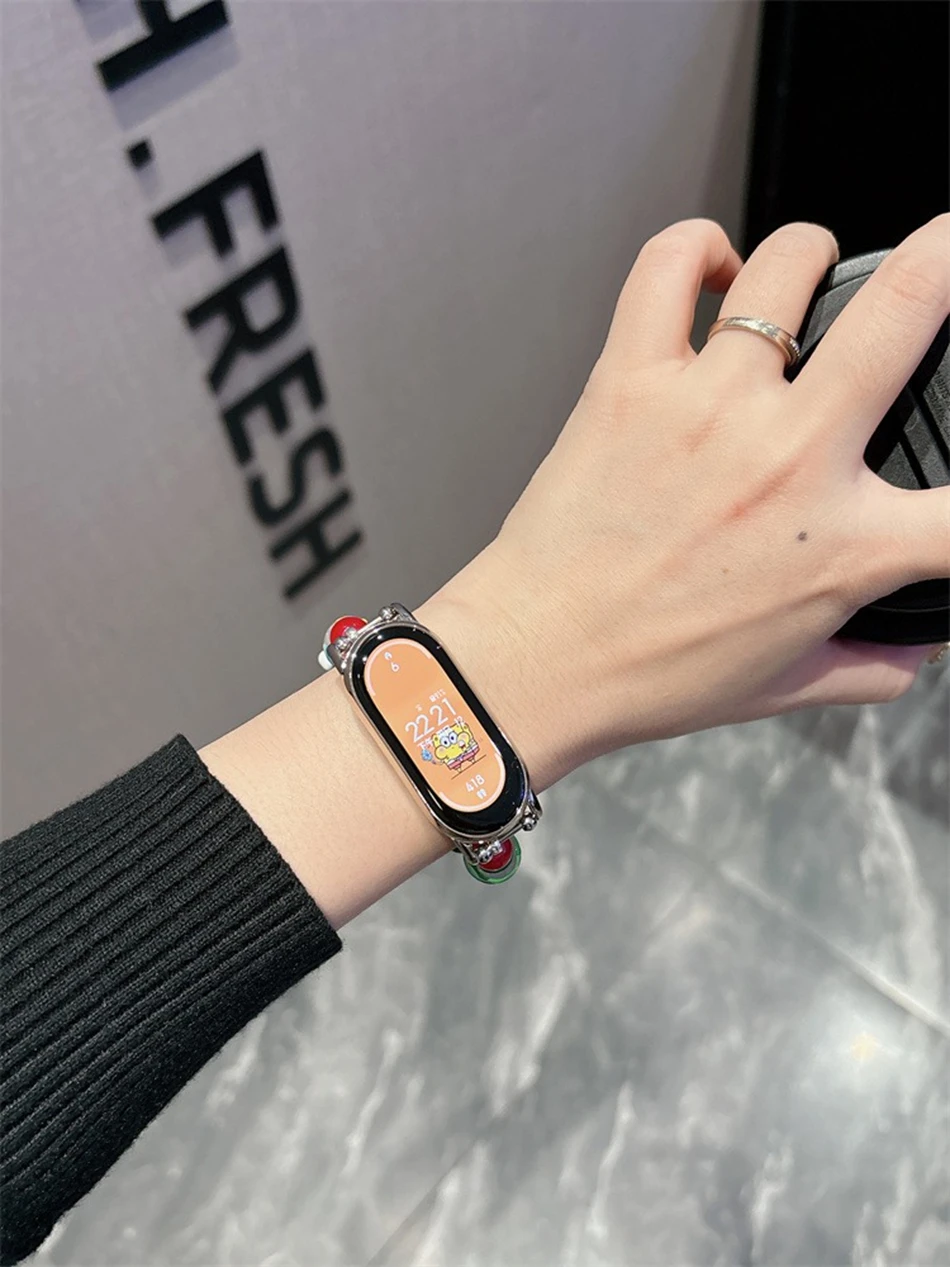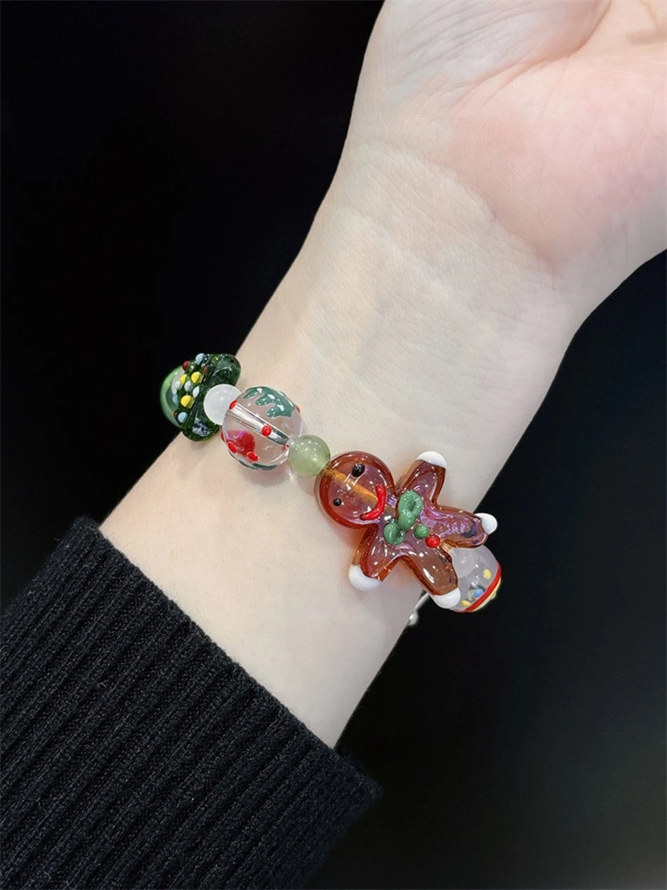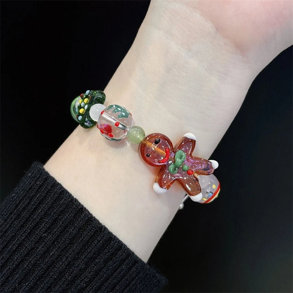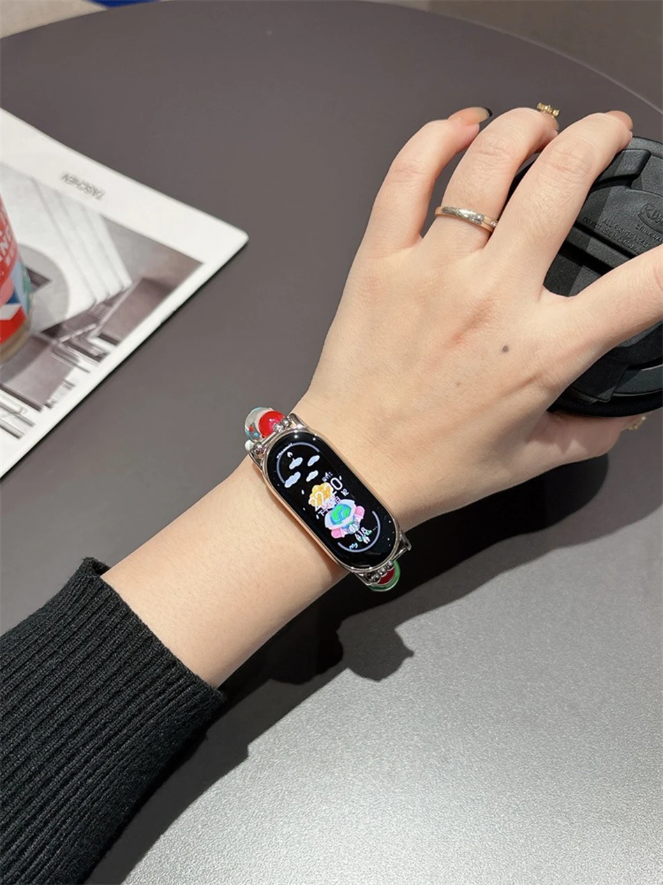 Christmas Strap For Xiaomi Mi Band 10 9 8 Pro Miband 9Pro 8 Pro Gingerbread Resin Beaded Elastic Bracelet Wristband Watch Band
