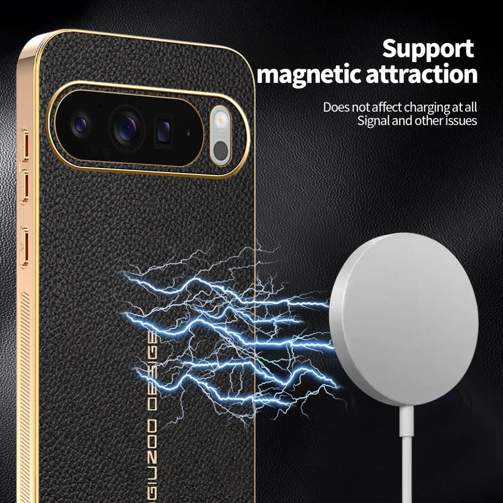 Classic Litchi Leather Magnetic Plating Frame Phone Case For Google Pixel 9 10 Pro XL 9A 6 7 8A Pro Non-slip Bumper Hard Cover