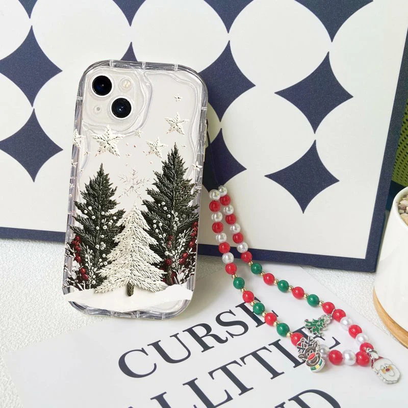 Cute 3D Christmas Santa Claus Tree Chain Phone Case For IPhone 17 Air 16 Pro Max Plus 12 13 14 15 Pro Max Mini 16E Soft Cover