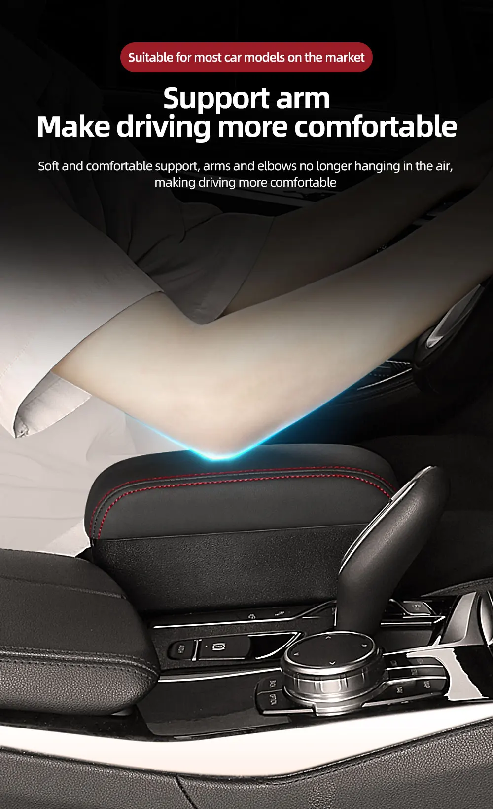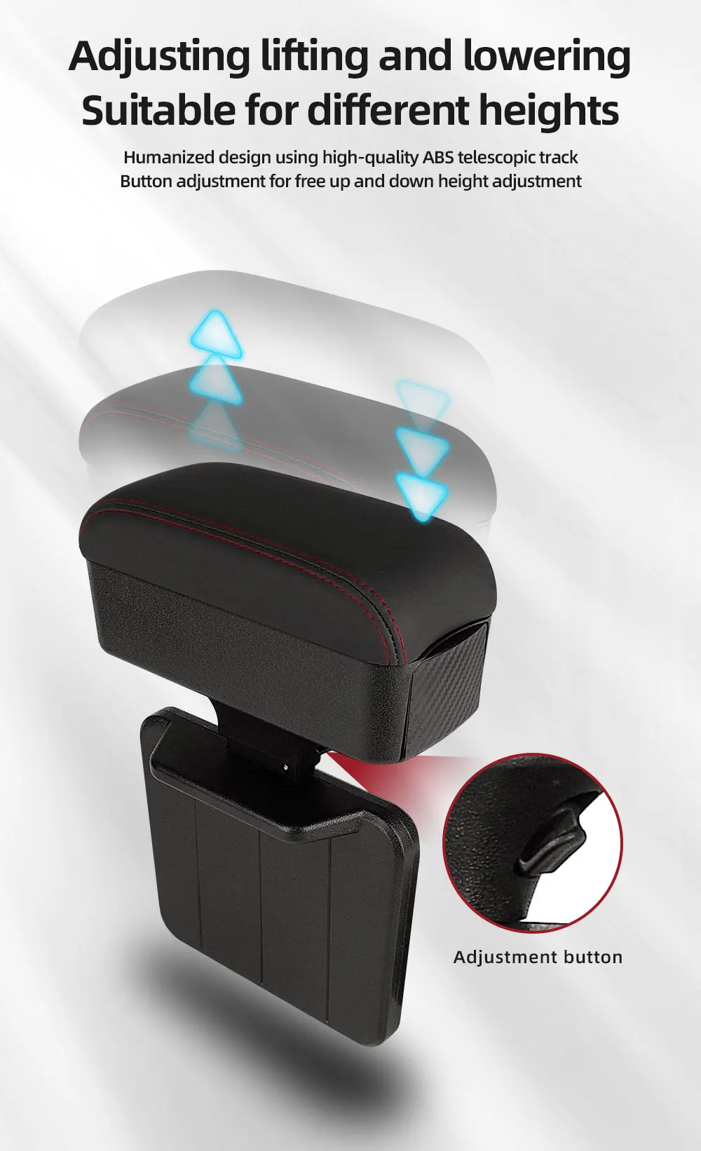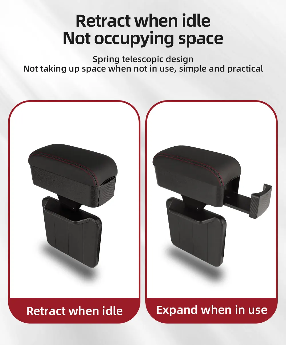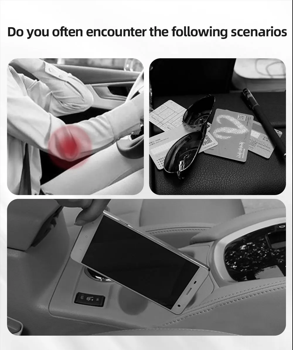 Height Adjustable Car Center Console Gap Storage Organizer with Liftable Tray Elbow Support Armrest Pad for SUV Sedan