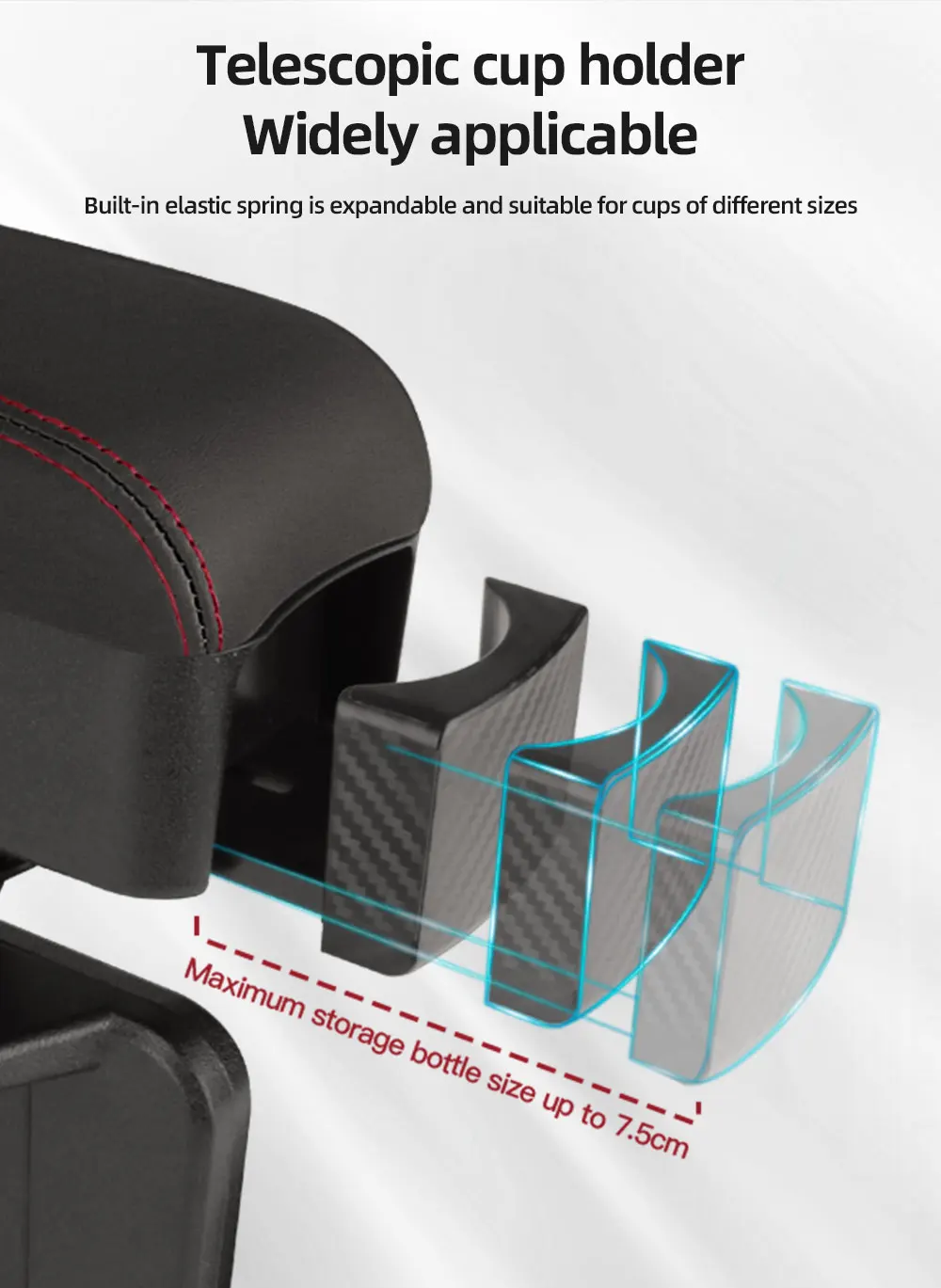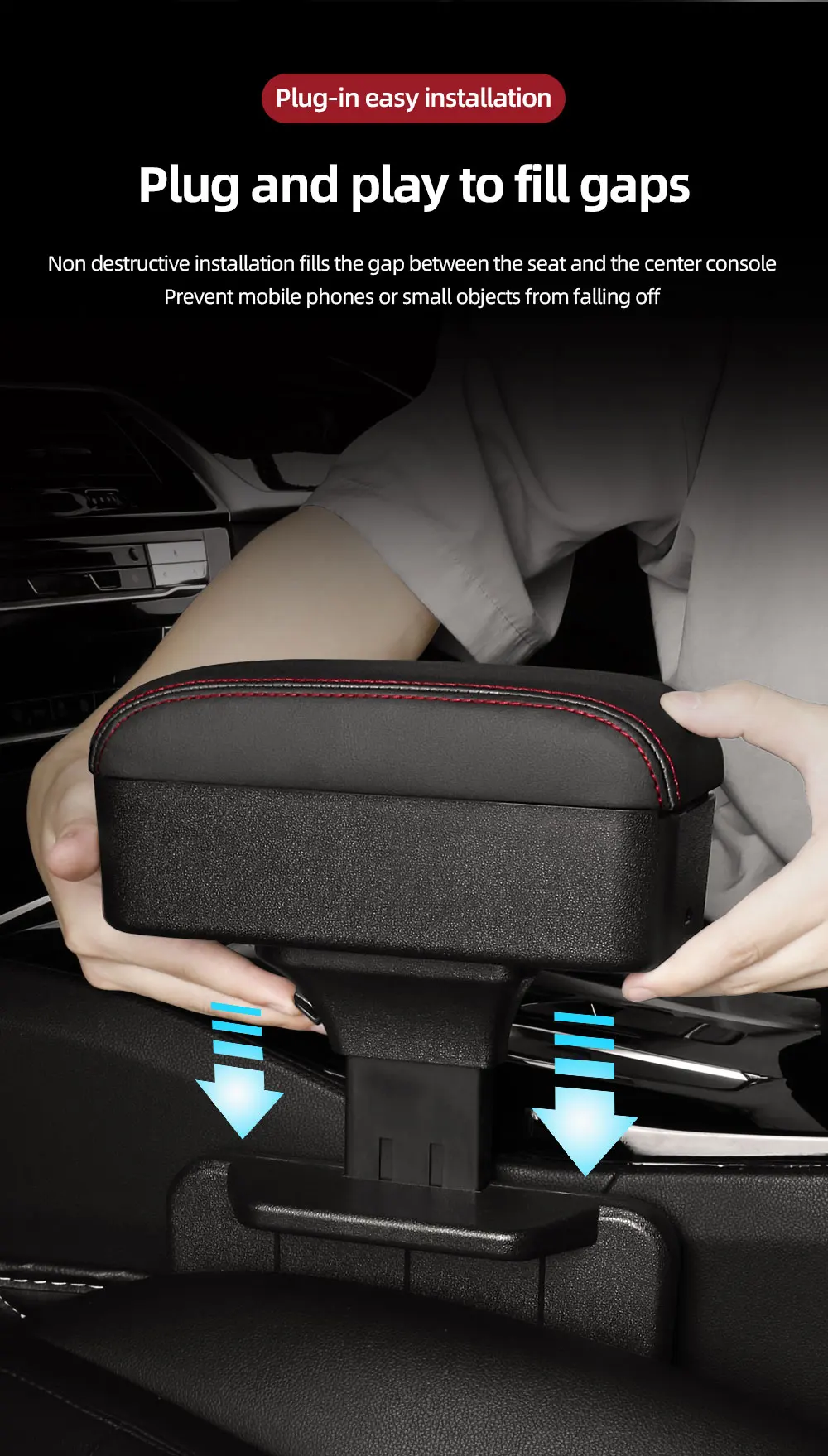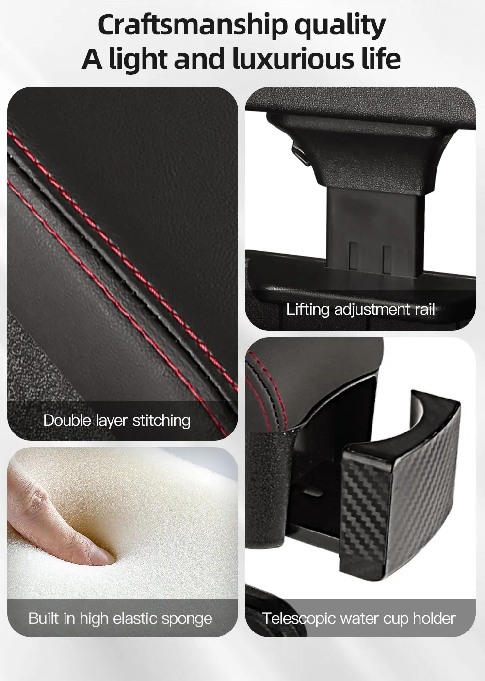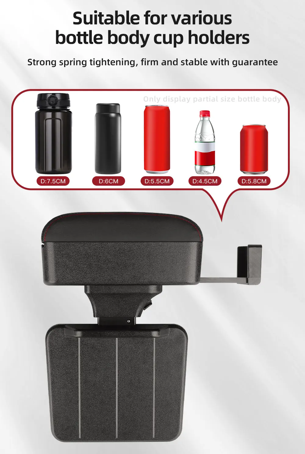 Height Adjustable Car Center Console Gap Storage Organizer with Liftable Tray Elbow Support Armrest Pad for SUV Sedan