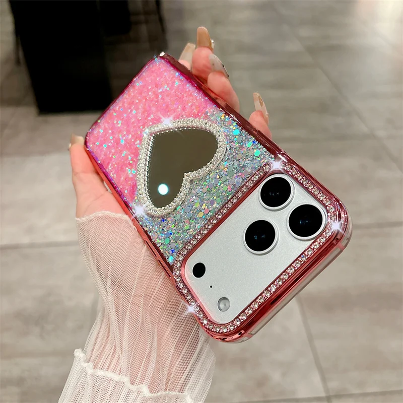 Feature 2: Love Heart Makeup Mirror Phone Case for iPhone 14 15 16 ProMax