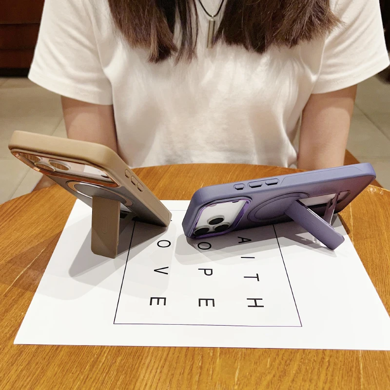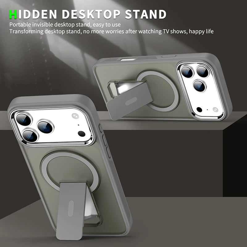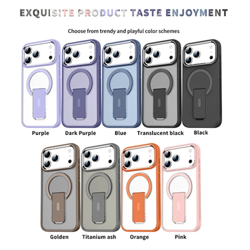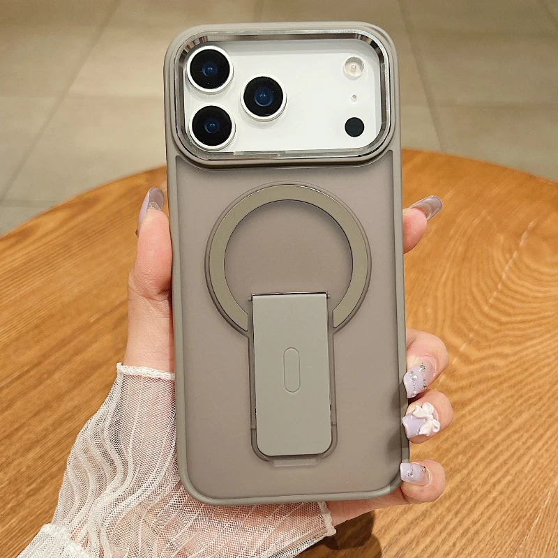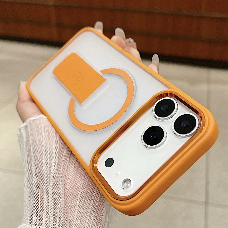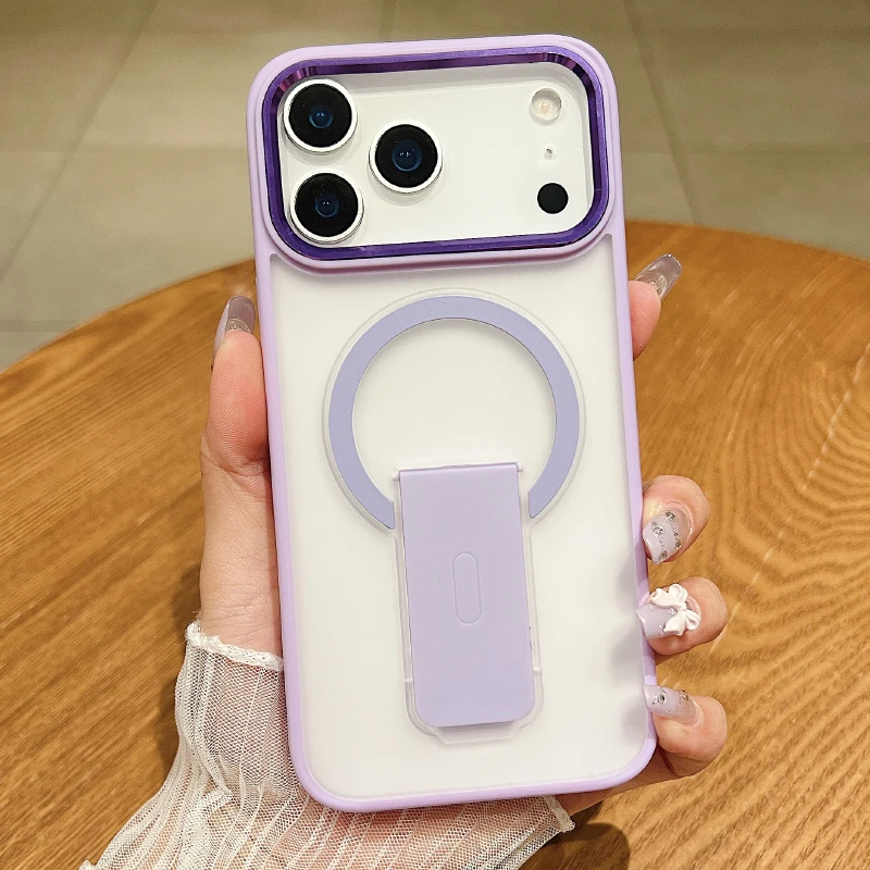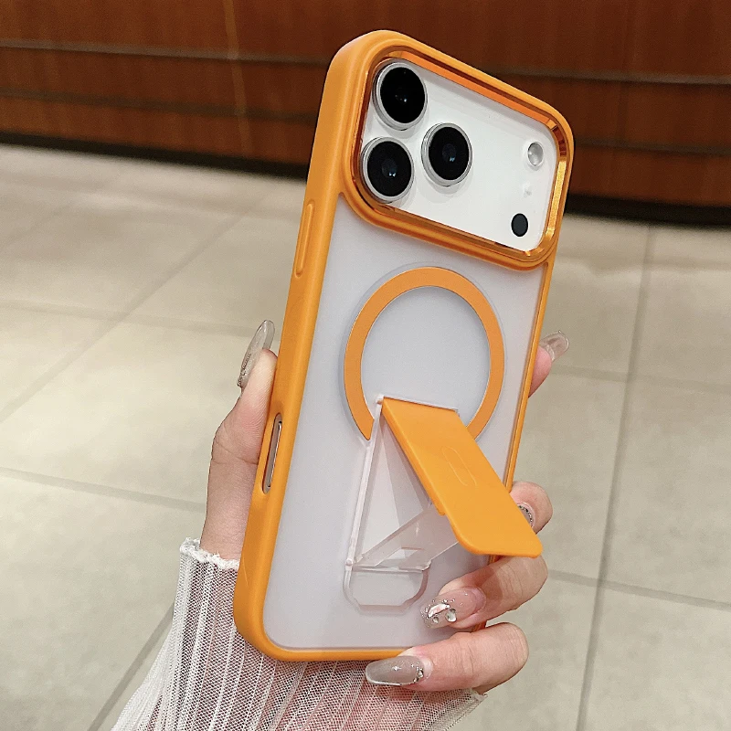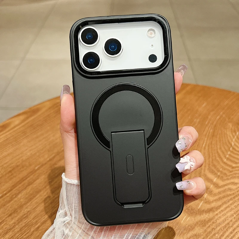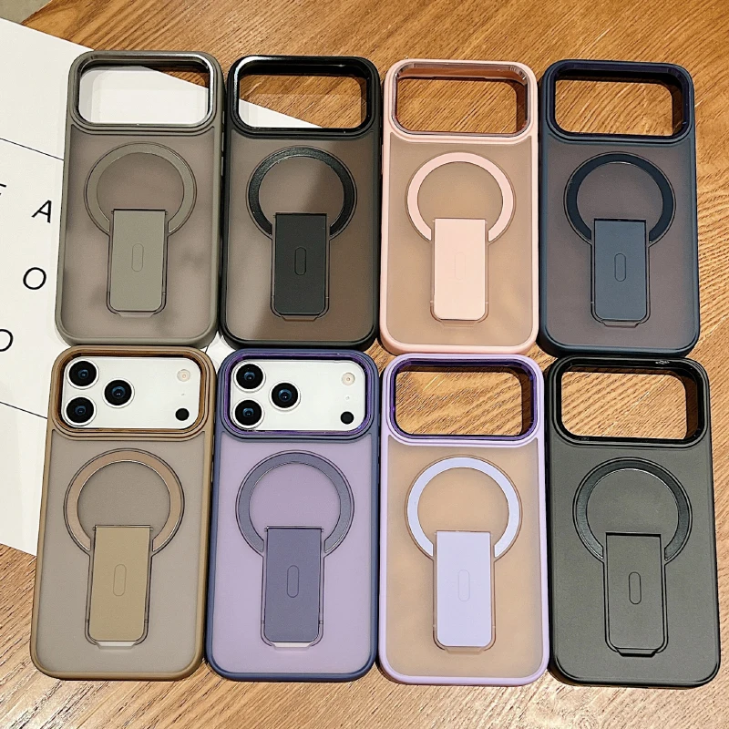 New For Magsafe Magnetic Wireless Charging Fold Holder Ring Translucent Matte Phone Case For iPhone 17 Pro Max Bumper Back Cover