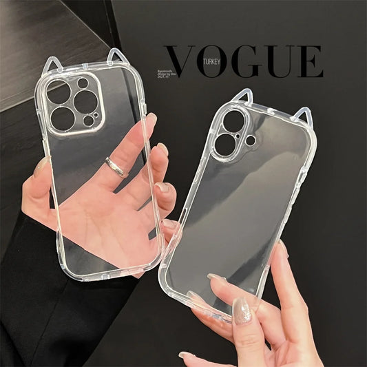 Fashion Clear 3D Cute Cat Ears Phone Case For iPhone 16 15 14 13 12 11 16 Pro Max 7 8 Plus X XR XS MAX Shockproof Soft TPU Cover