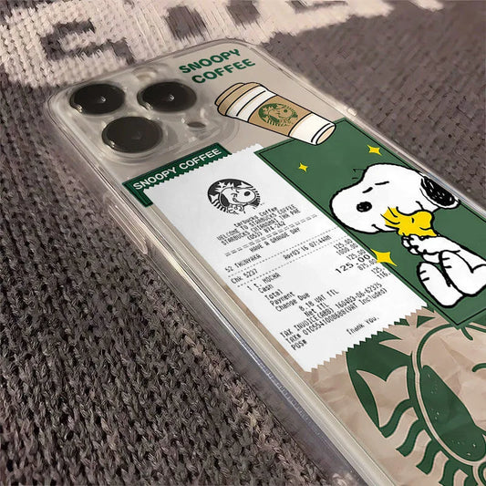 Funny Cartoon Cute Snoopy coffee Clear TPU Phone Case For iPhone 11 12 13 14 15 16 Pro Max 16 Plus Lovely Snoopy Anti-Fall Cover