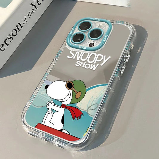 Pilot Snoopy Show Mirror Phone Case For iPhone 14 13 12 11 15 16 Pro Max Lovely Hard Shockproof Kawaii Cover