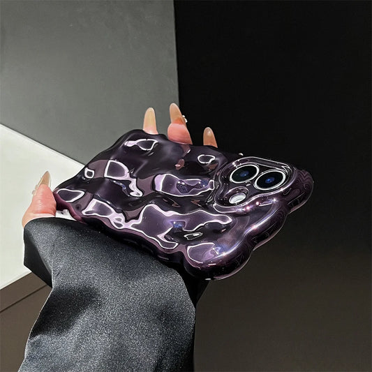 Glossy Wrinkle Plating Wave Border Phone Case for iPhone 16 15 Pro Max Plus 11 12 13 14 Meteorite Pattern Soft Silicone Cover